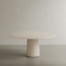 The Santo Dining Dable in Bone Microskin, combines style and functionality, offering a contemporary yet timeless touch to both indoor and outdoor spaces. With its expansive 160cm diameter, the table features a graceful round top and a sturdy conical base, creating a natural and modern atmosphere for up to eight guests. The smooth surface and gently curved edges reflect the tranquil elegance of Wabi-Sabi and Japandi aesthetics, making it an ideal centrepiece for family gatherings or intimate dinners with friends.